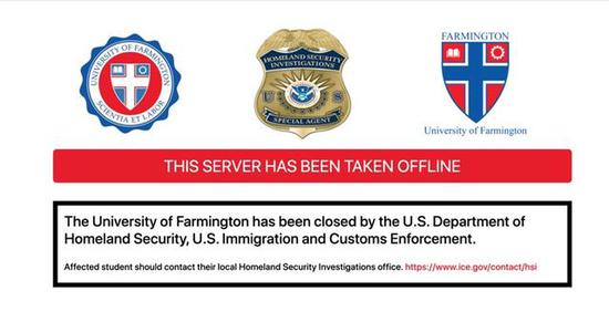 “法明顿大学”官网目前已被美国国土安全部和移民局取缔