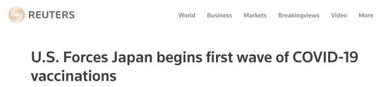 [环球网报道 见习记者 边子豪]路透社刚刚消息称,当地时间28日,驻日美军已经开始第一轮新冠疫苗接种。