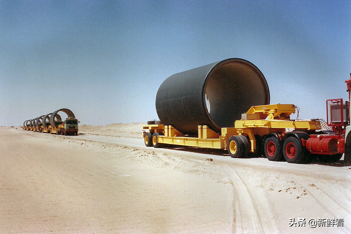 利比亚媒体称其为“世界第八大奇迹”的工程项目,这个工程包括2.5亿立方米的土方量,1300多口深达500米以上的水井,每天,由太阳能驱动水泵,将650万立方米干净的地下水从水井中抽出,