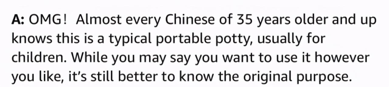 我的上帝啊!几乎所有35岁以上的中国人都知道这是典型的便携式便盆,通常是给孩子们用的。当然了你可能会说你想怎么用就怎么用,我只是觉得你了解它原始的用途会比较好。