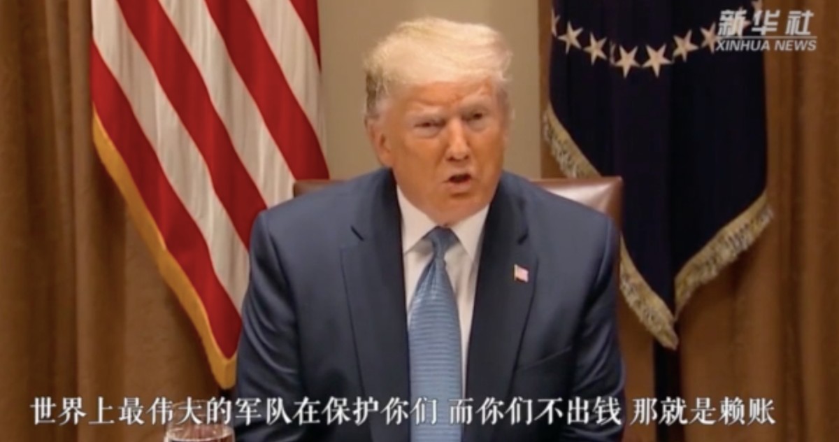 特朗普强调:“美国人保护你们,而你们不出钱,那就是赖账。我要求北约各国将国民生产总值的2%用于北约集体防御军费开支。”