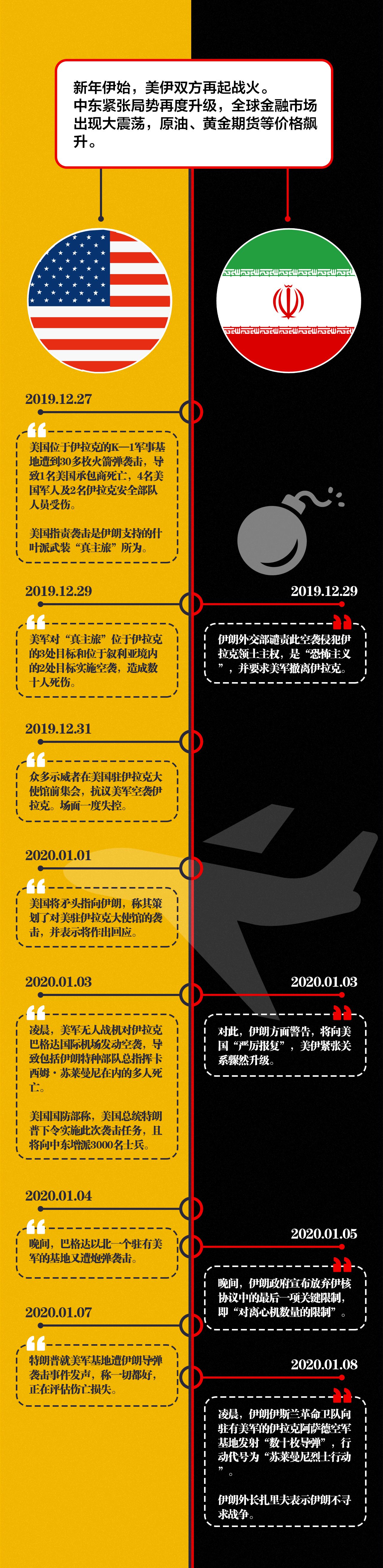 新年伊始,美伊双方再起战火。中东紧张局势再度升级,全球金融市场出现大震荡,原油、黄金期货等价格飙升。