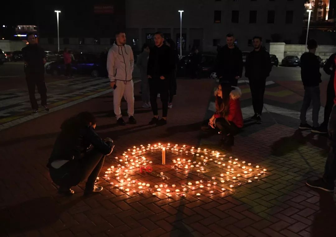 11月27日,在阿尔巴尼亚地拉那,人们点燃蜡烛哀悼地震遇难者。新华社记者 张立云摄