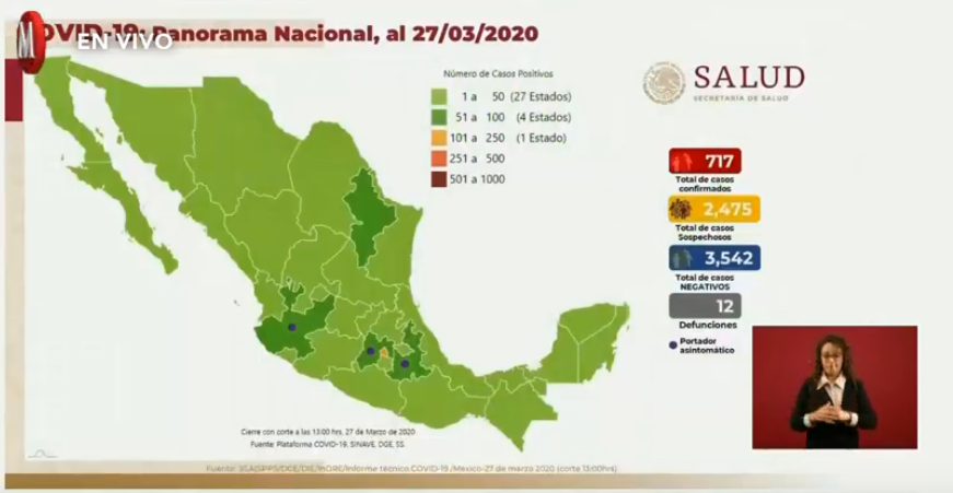 当地时间3月27日,墨西哥卫生部宣布,截止到当地时间27日晚上7时,墨西哥全国确诊717例新冠肺炎病例,较前一天新增了132例,单日新增确诊病例数量再次刷新,增幅较大。另外还有2475例疑似病例,而此前已经排除的疑似病例已经累计到3542例。同时,墨西哥全国确诊死亡病例较前一天新增4例,总数已经上升到12例。(总台记者 盛嘉迪 吕兴林)