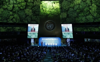 在美国纽约,9月23日,联合国秘书长古特雷斯在纽约联合国总部召开联合国气候行动峰会,旨在集中展示各方积极应对气候变化的行动和成效,为全球应对气候变化提供政治推力,提振全球气候行动的雄心和水平。
