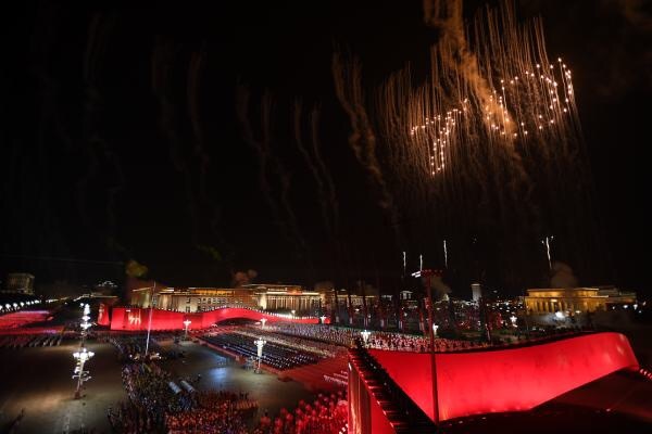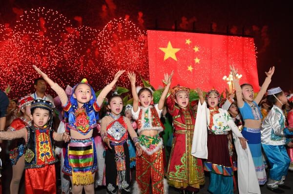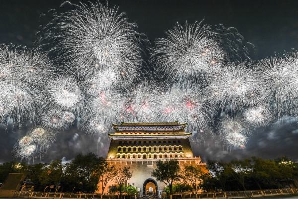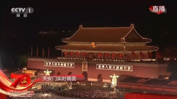 2|庆祝中华人民共和国成立70周年联欢活动10月1日晚8时在北京天安门广场举行,含文艺演出和焰火表演,下图为联欢活动现场。