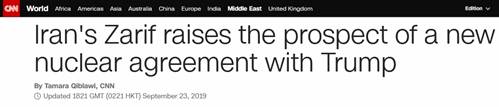 此外,报道称,扎里夫在接受采访时还表示,不排除伊朗总统鲁哈尼与特朗普本周在联合国大会期间会晤的可能性,“(他们会面的)前提是特朗普总统准备好做必要的事。”