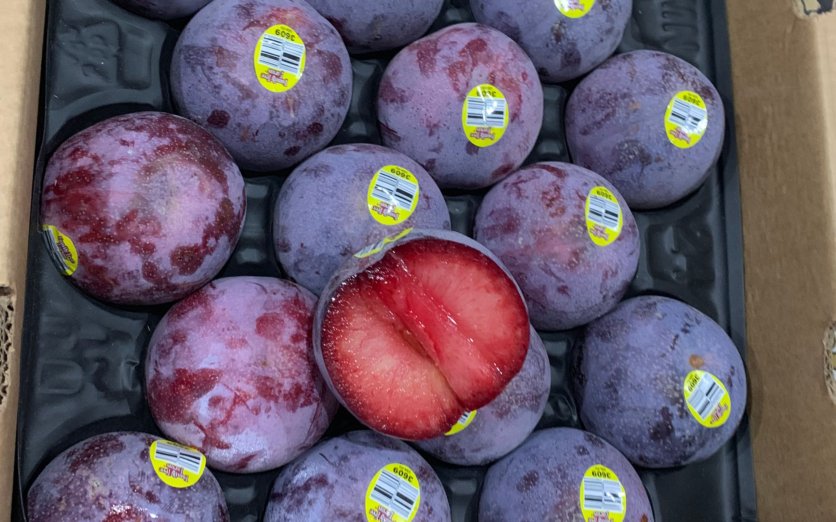 果商高先生介绍,“恐龙蛋”是由美国育种,通过杏、李多次种间杂交培育出的高档水果,兼具了杏的香味与李子的甜味。原本只有美国出产,但这两年在智利、加拿大、澳大利亚,甚至我国也有种植。“恐龙蛋果实大,黑皮红色果肉,吃起来有焦糖的香味,让很多人一吃就上瘾。”
