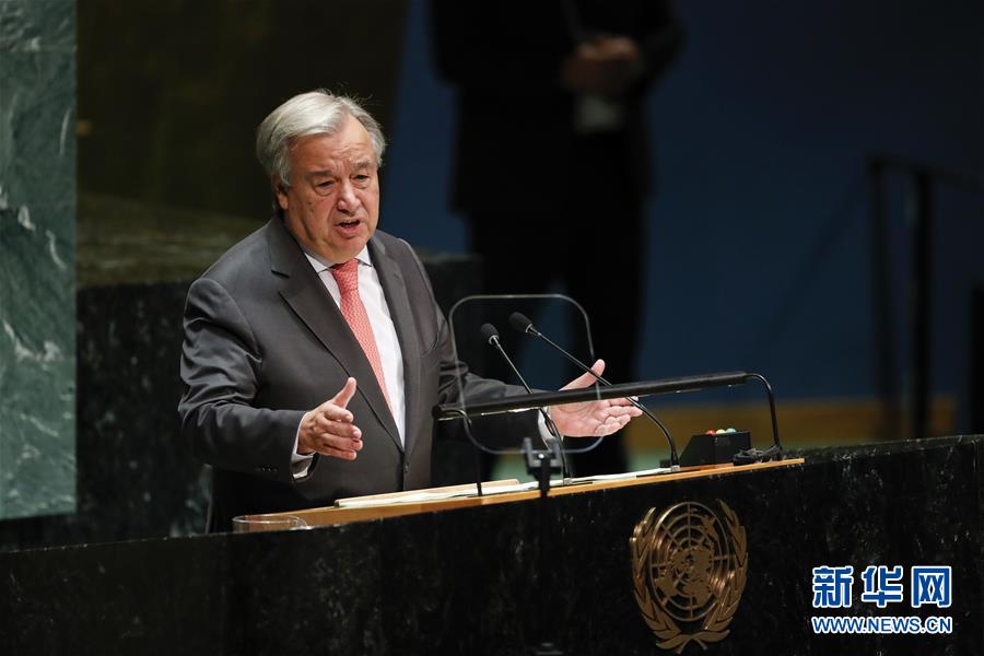 9月24日,在位于纽约的联合国总部,联合国秘书长古特雷斯发表开幕讲话。 第74届联合国大会一般性辩论于24日开始举行,30日结束。约140位国家元首和政府首脑出席,就当前国际社会面临的重大问题阐述立场。 新华社记者李木子摄