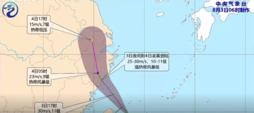 中央气象台发布消息称,“黑格比”将于3日夜间至4日凌晨,在浙江温岭到苍南一带沿海登陆。