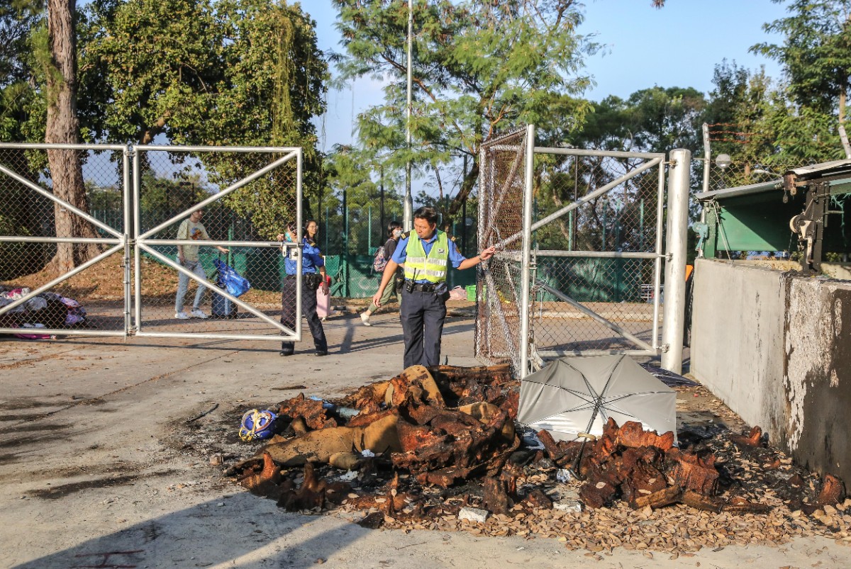 曾被激进示威者当做“练武场”的夏鼎基运动场,未及清走的物资堆成小山,散落在看台和草地上,一些食物已经散发出腐败的气味,吸引了不少蚊虫。烧焦的皮垫、熏黑的草坪,依然留有汽油弹肆虐的痕迹。
