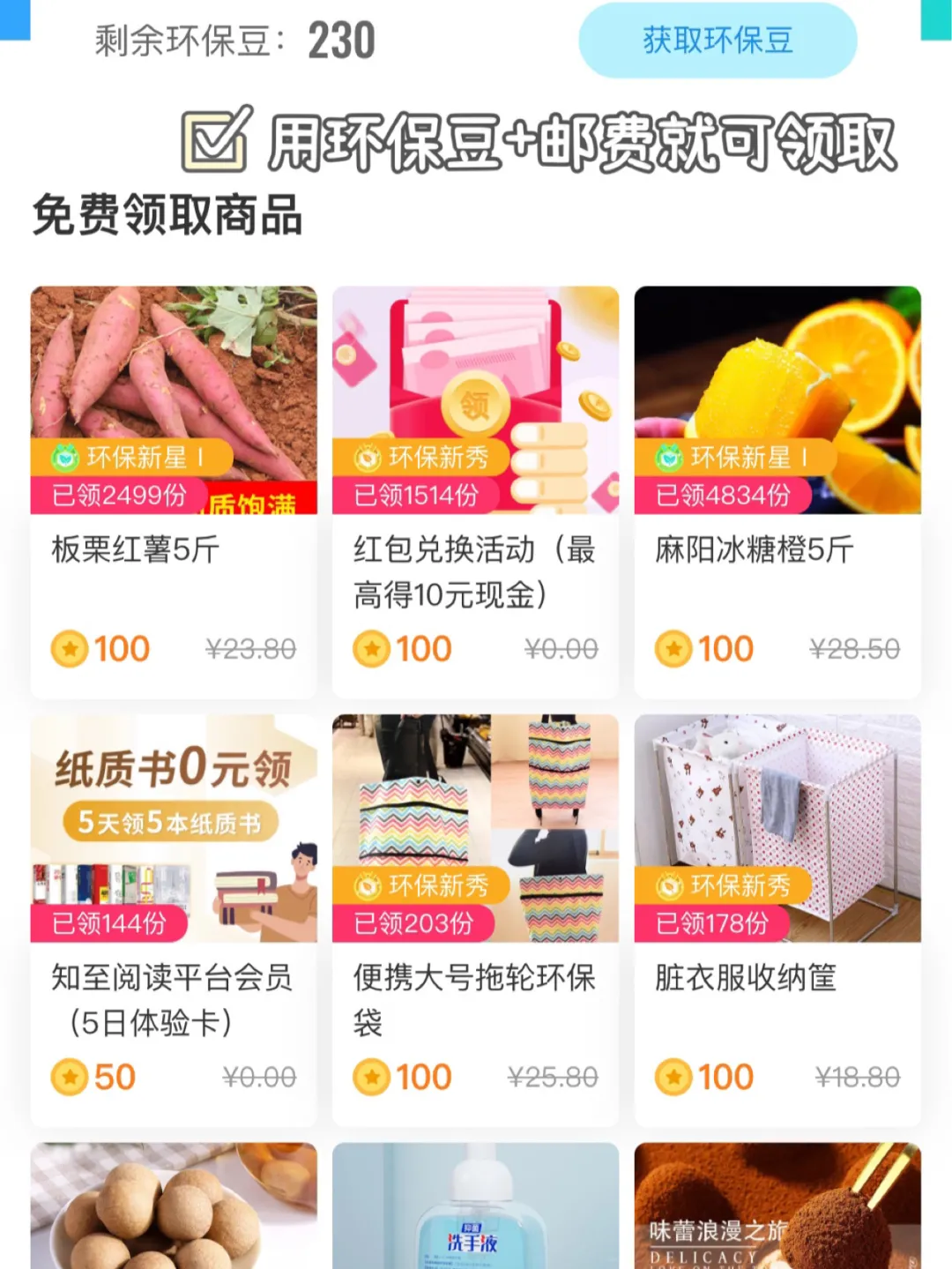 而环保豆就可以用来兑换一些免费商品,