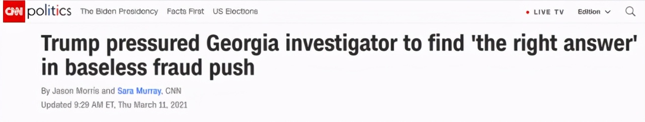而且,在另一篇《华盛顿邮报》于近日发布的关于此事的报道中,该报仍坚持认为特朗普的做法有“干涉”司法的嫌疑,称特朗普即便没有说出该报1月报道中“错误引用”的那些原话,他仍然在通话中流露出了认为自己赢得了大选,选票中就是存在欺诈,并希望调查人员能找出这些证据的情绪,还给调查人员提出了很多调查的方向。