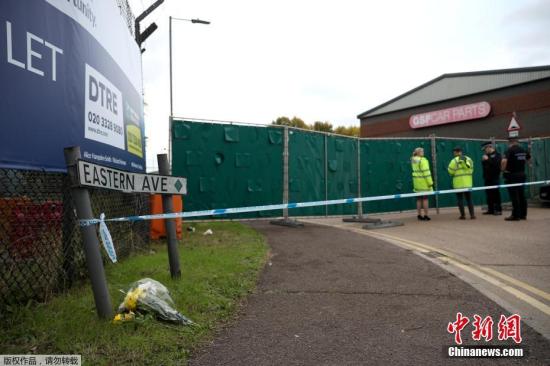 当地时间10月24日,英国埃塞克斯郡,人们在发现货车的地方献花悼念死者。