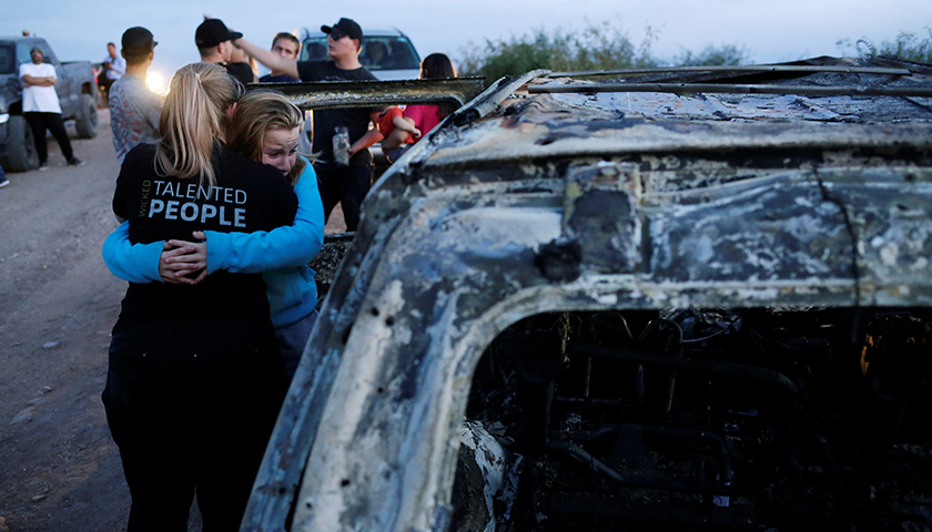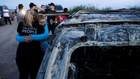 在密密麻麻的枪声之下,一名女性曾试图下车表露身份,但被杀身亡,另一名女性的13岁儿子则在母亲中弹后,将余下能走动的六名孩子藏在了灌木丛内,自己徒步近五个小时回家求救。然而在家属赶到现场时,其中一辆越野车连同车内的大人与孩子都已被燃烧成灰烬,他们只在另一辆车里找到了一名幸存的七个月大的婴儿。