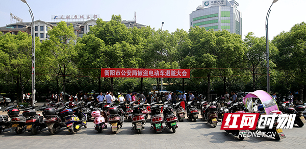 2018年5月4日,衡阳市公安局雁峰分局举行退赃大会,30辆电动车与失主“重逢”。失主刘勇告诉记者,当天上午骑电动车外出办事,将车停在财富广场附近,结果办事回来电动车就不知去向。下午2点到环城南路派出所报案,晚上8点,派出所民警就打来电话说电动车找到了。