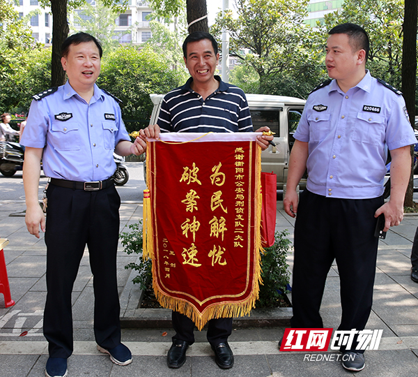 懊悔之余,他急忙报了警。怎么都没想到,报警后,出警民警根据防盗定位装置进行追踪,最终将车辆找回,并抓获盗窃嫌疑人。肖茂国感激不已,给衡阳市公安局电动车管理办公室送来一面锦旗。
