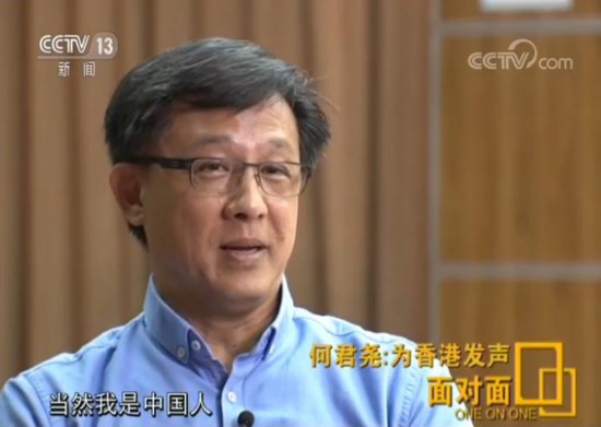 今年9月,何君尧在接受中央电视台《面对面》栏目专访时表示,“面对庞大的外部势力搞乱香港,也可以选择完全不出声,但从自己的良知来讲,我要有使命感,我要知道自己应该要干什么事情,所以要发声音出来”。何君尧表示,面对“港独”势力,他会站在最前面,勇于说“不”。