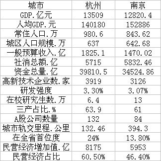 从主要经济指标来看,杭州与南京差距不大。