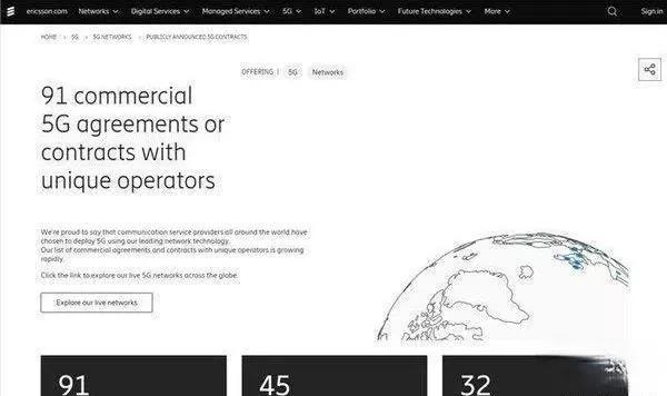 5月2日,爱立信官网宣布了最新5G订单数量,达到了91份订单。