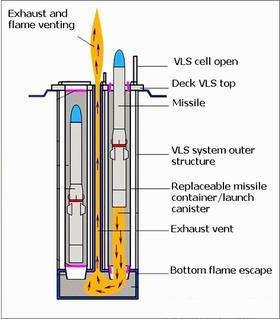实现了自动填装之后,工程们突然反应过来,为啥要装弹呢?要是能直接把备弹在“弹匣”中垂直发射出去,然后在空中调整导弹的姿态,达到指向目标的目的。这么一来,不仅不用再考虑填装的问题,而且导弹指向目标更快,射界直接覆盖360°,就算是放在舰艏的导弹也能攻击后方目标。于是,垂直发射系统出现了。