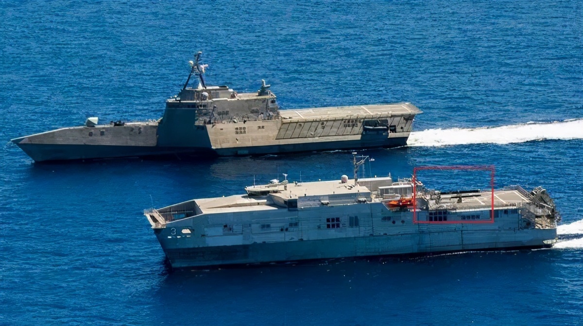 ▲搭载电磁炮的“米利诺基特”号试验舰(红框标出的为电磁炮)