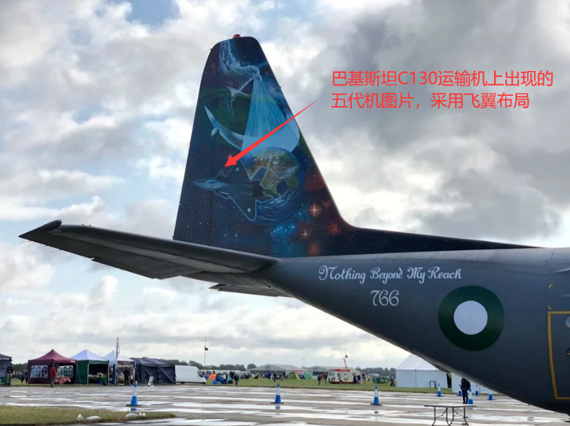 巴基斯坦空军的C-130B运输机尾翼上出现的五代机轮廓