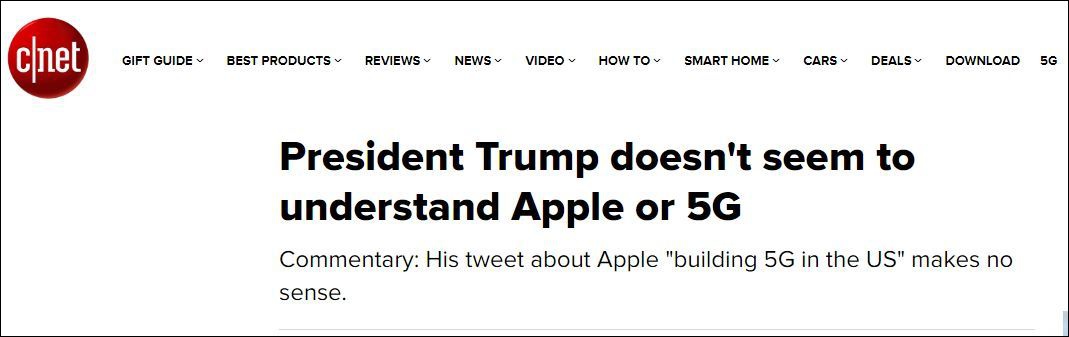IT新闻网站CNET则毫不留情地说,特朗普恐怕是还不懂啥是苹果,啥是5G。