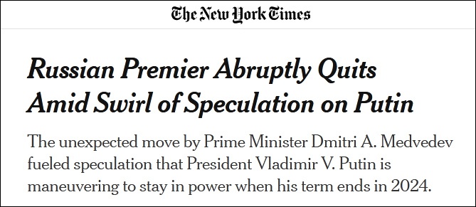 西方媒体当中呼声最高的是:普京此举可能是为延长他离开克林姆林宫之后的统治,使他在卸任之后仍可以通过其他身份维持权力。