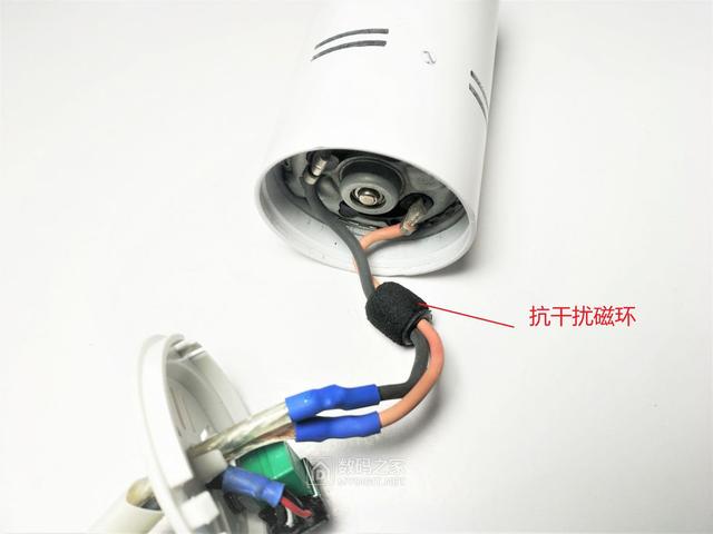 全部焊好粘好,引线套了一个抗干扰磁环,实际原电机带的,一直没有出镜,由于空间局促,打算舍弃,为了追求完美,还是尽可能的装配进去了。