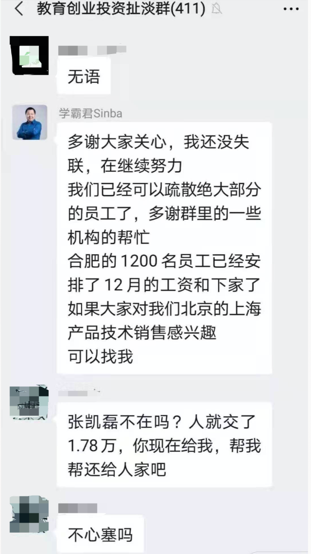 面对喧嚣尘上的传闻,截至目前,学霸君官方尚未表态,但疑似学霸君创始人兼CEO张凯磊27日晚间在一个群聊里的说法基本坐实了传言: