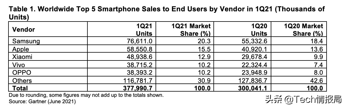 最后,你对2021年Q1季度的手机出货量排名有何看法?