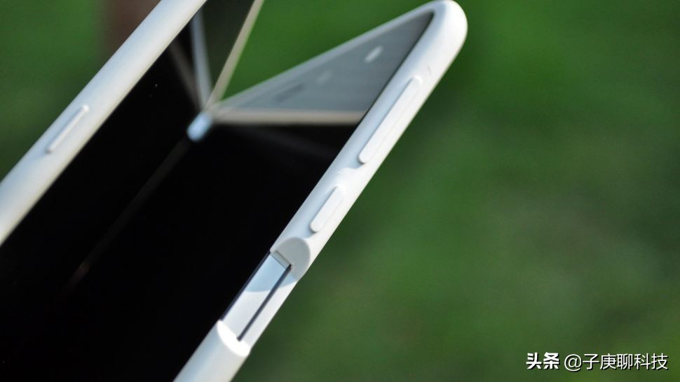 不得不说,Surface Duo 在图片中看起来很呆板。在具有柔性显示器的设备时代,Duo 拥有两个独立的、传统的 5.6 英寸大猩猩玻璃遮罩面板,带有巨大的边框。手机的外观采用白色涂漆玻璃和哑光白色框架,而打破它的只有不锈钢双筒铰链和类似镜面的微软标志。但是当你拿着 Surface Duo,尽管这个单调且有些过时的主题,它感觉非常特别。