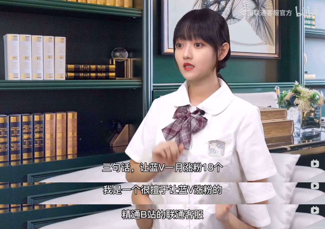 我是一个是很善于让蓝V涨粉精通B站的联通客服