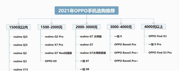 目录 一、OPPO/一加/realme手机产品线梳理二、OPPO/一加/realme机型选购推荐1、选购建议 2、按不同需求推荐 3、具体机型分析推荐 (1)1500以内价位(2)1500-2000价位 (3)2000-3000价位(4)3000-4500价位(5)4500以上价位一、OPPO/一加/realme手机产品线梳理