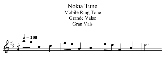 结果显示,只有一首曲子可以被所有人立即认出来,那就是诺基亚的这首铃声。如今它已经成为历史上播放次数最多的音乐,也内置在了绝大部分的诺基亚手机之中,官方还推出过另外 8 种不同音色的改良版。