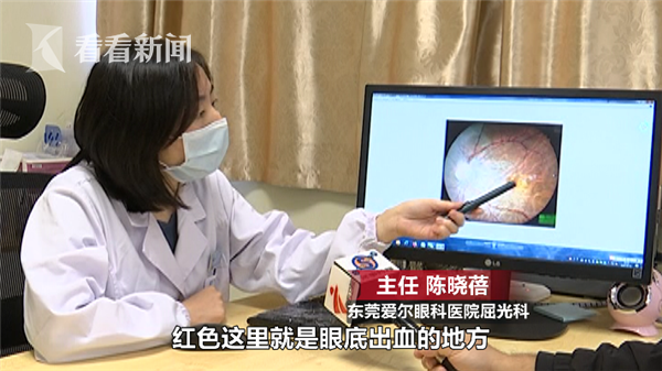 东莞爱尔眼科医院屈光科主任陈晓蓓说:“高度近视是眼轴变长的迹象,眼轴变长后,眼底的血液循环会比之前变差,可能他在疫情期间用眼过度,所以就突然出现了眼底出血的现象。”
