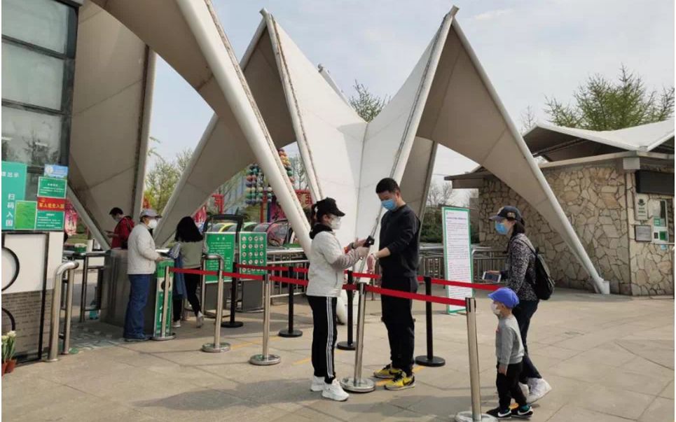 为应对“五一”期间游览高峰,保证疫情期间游客安全,多景区采取“实名预约+限流入园”措施。游客须提前通过景区官方微信等渠道网上实名预约购票,现场通过“北京健康宝”小程序查询行程,扫描二维码登记个人信息,并接受体温检测,合格后出示购票二维码扫码入园。