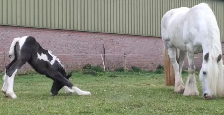瑜伽是很多人喜欢的运动,可是你能想象一只出生才几天的小马驹也能做出完美的瑜伽动作吗?