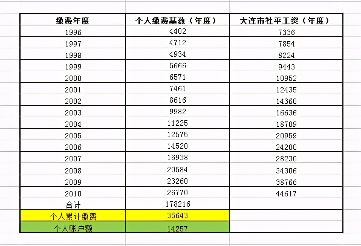 假设这位网友从1996年开始参保缴费,一直到2010年开始停止缴费,假设2021年年初退休了,那么养老金能领多少呢?根据计算公式: