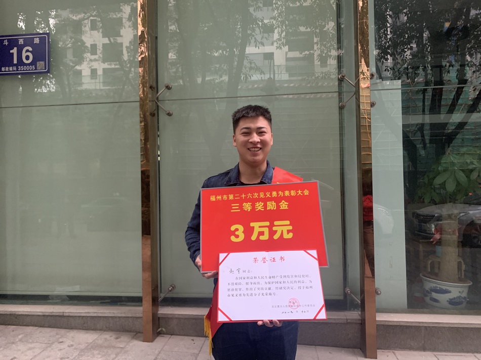 12月18日上午,福州市召开第二十六次见义勇为先进分子表彰大会,对一年来31名见义勇为先进分子进行表彰奖励。因救下被侵犯的女子引发社会关注的赵宇名列其中,被授予福州市见义勇为先进分子称号,同时获得三等奖励金3万元。