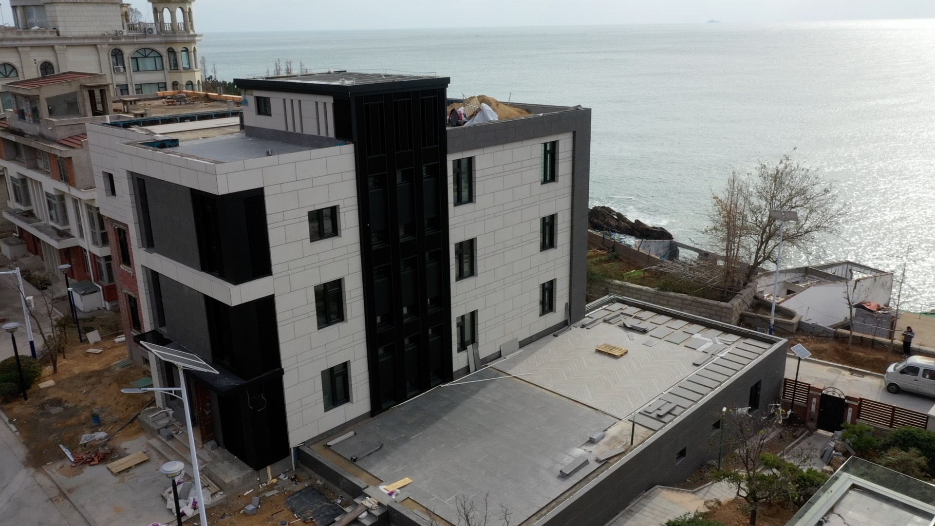 邻居李女士表示,涉事别墅从2018年底开始装修并扩建,目前已彻底完工。她称,这导致自家海景房如今一推窗即是建筑墙。