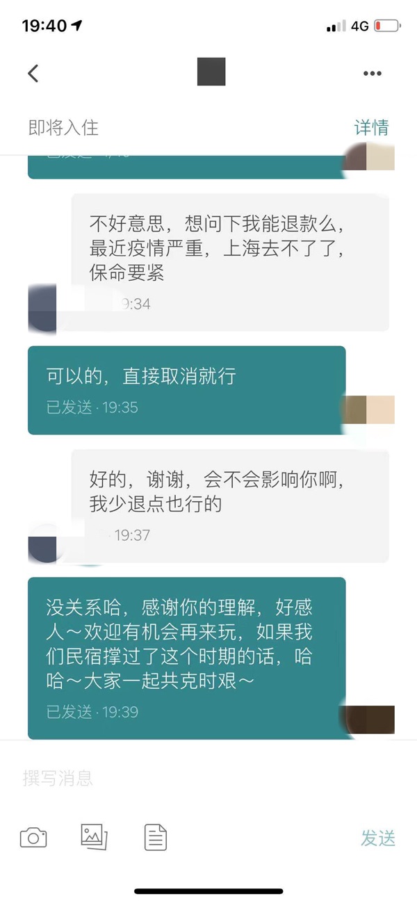 短租房东李平(化名)很“爽气”地满足了游客所有的退订需求,即使是爱彼迎出台全国退改政策前也没有要求房客支付任何违约金,“将心比心,不想赚这个钱”。然而,连续没有收入加上自己承受的房源租金压力,他不免也有些忧心忡忡,“希望二月中旬能好起来,这样还能继续做”,他说。