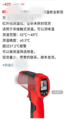 商家称工业测温枪测体温“没差别”