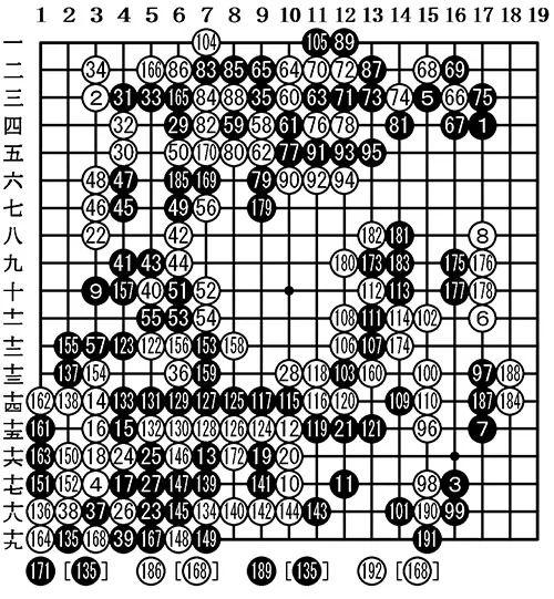 结果:共192手白中盘胜