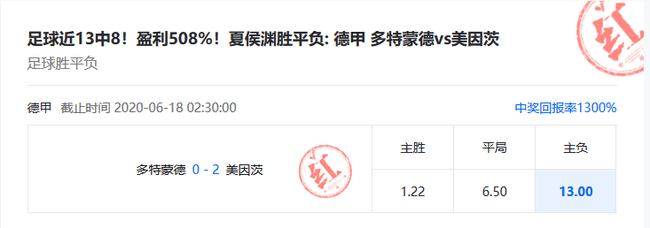 昨日精彩赛事众多,小炮英雄和球通专家纷纷上演高光表现,其中小炮英雄夏侯渊和赵云单挑命中多特输球13倍大冷,AI精选豪取13连红,操盘手华哥斩6连红![小炮智能英雄持续高盈利][球通专家权威解读]