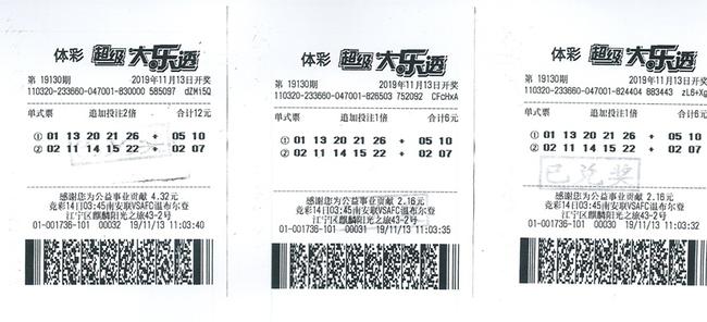 来自南京江宁的购彩者赵先生,带来的中奖彩票多达3张,每张彩票都选了2注完全相同的号码,其中2张是1倍追加投注,另1张则是2倍追加投注。这3张彩票都是购于南京3201001736体彩网点,出票时间相差很短,前后一共不到10秒钟。那为什么不直接买一张4倍追加投注的彩票呢?对此,赵先生表示,这是他个人的习惯,先随机出张票,扫一眼觉得号码不错的话,就照着多打几张。最终,赵先生凭借这三张彩票,中得19130期大乐透追加二等奖4注,总奖金4009520元。