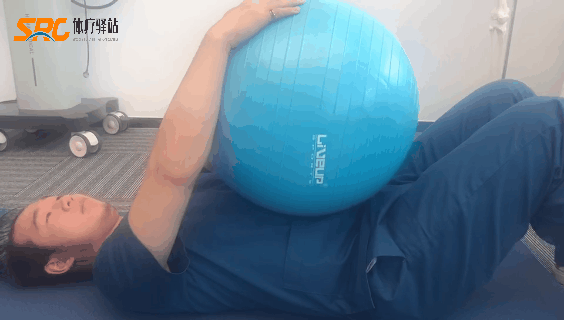 ◆躺在床上屈髋屈膝,把瑜伽球放在肚子上,上肢往下压瑜伽球,吐气的时候顶肚子,吸气的时候放松。