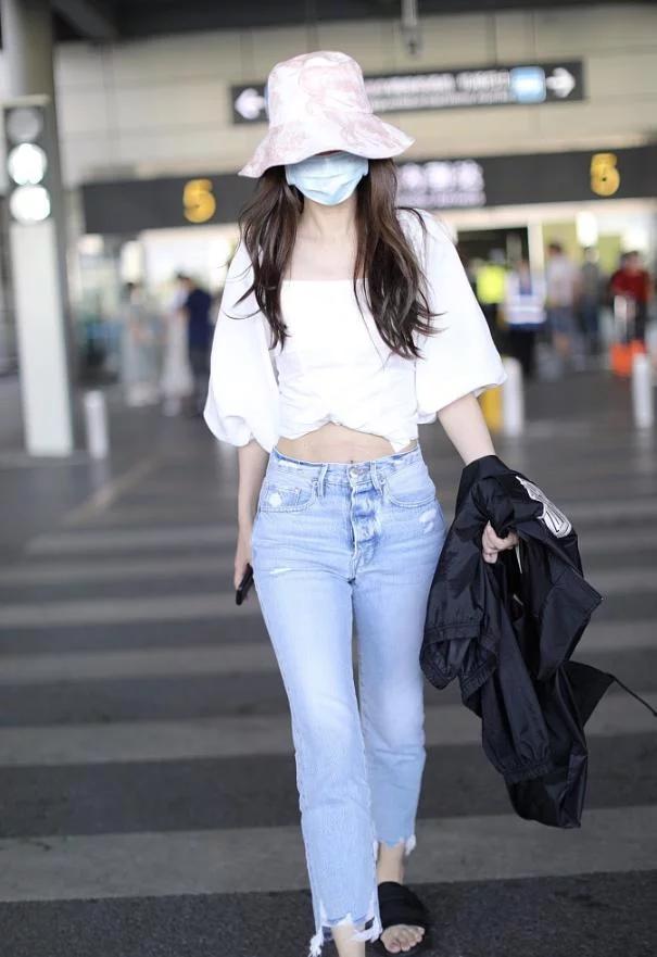 将近三年,Angelababy上的妊娠纹也消退得差不多,开始穿起了露脐装。天台上的母子合影是一张,前不久穿泡泡袖露脐装现身机场是另一张。