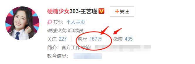 而接下来比张艺凡好一点的人是王艺瑾,一个后来成了黑马闯进了出道位的女孩,她出道自豪的粉丝量,也排在了张艺凡的前一名,167万的数据,相信大家看多了七八千万粉丝量的艺人,就会觉得这样的粉丝量其实不多,就算不垫底也没有优势啊。